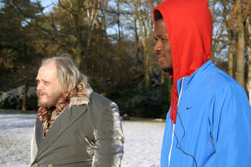 Herrmann, der Karusker und Rahim. Carl-Heinz Hille, Ibrahima Bah (Szenenfoto)