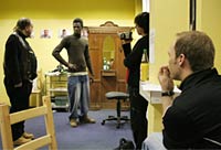 In den Proben wird der Stoff erarbeitet.Carl-Heinz Hille, Ibrahima Bah, Eike Swoboda, Felix Engel