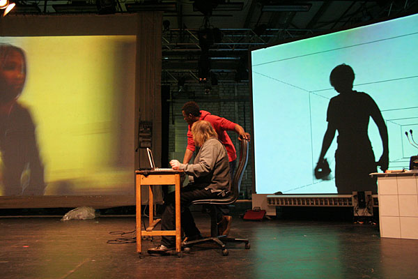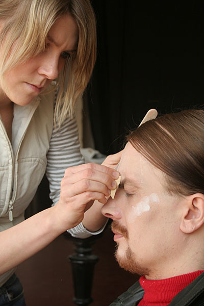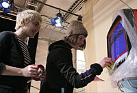 16.03.2006 Endspurt im ThaliaDer Monitor in der Maske bei Lolita und Hannah |
