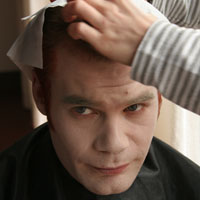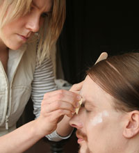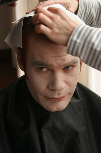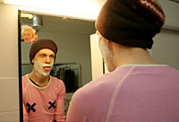 Florian bereitet sich für seine Maske vor. |