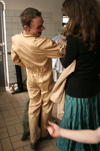 06.03.2006 Der letzte Dreh! Heute werden die letzten Filmaufnahmen gedreht.Bei der Kostümanprobe: Florians Kostüm lädt zum Zwicken ein... |