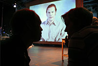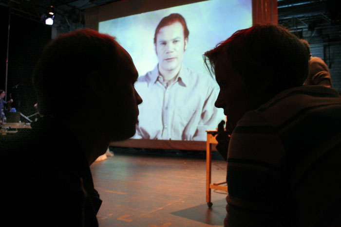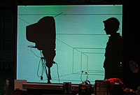 Delete bei der Arbeit und Dr. Palminger auf der Leinwand. |