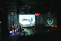 Der Kongress hat begonnen. Auf der Leinwand die Spezialisten: AR (Jan Thibout), ErXXX (Maik Winter), Capt'n Ploenk (Robin Enxing) und Zeta (Birgit Hohnen). |