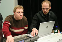 Torsten und Felix am Arbeitsplatz von Delete. |