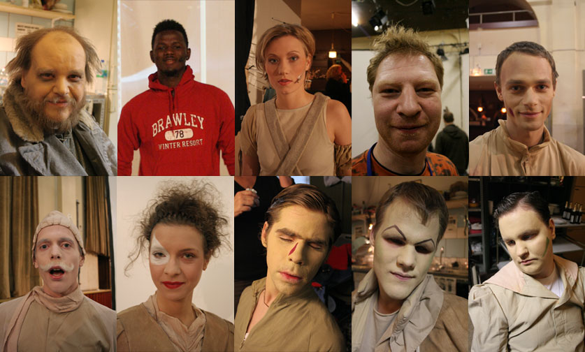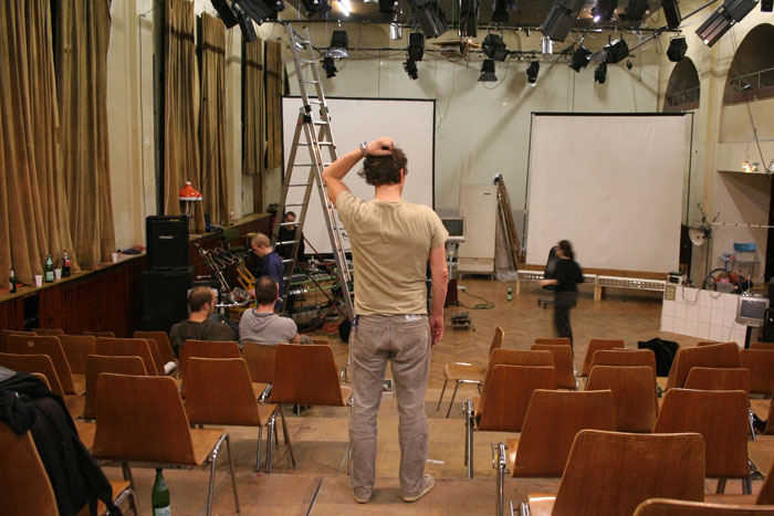 Man sieht, wer ausgeschlafen, zu viel geschlafen oder gar nicht geschlafen hat... oder? Und heute muss nach den Proben das Bühnenbild am Nachmittag zum zweiten Mal komplett abgebaut und mitten in der Nacht wieder aufgebaut werden. Das zerrt an den Nerven. |