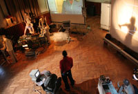 Für einige heißt es heute: durcharbeiten bis morgen nacht... Nach den Proben ist der erste Ab- und Aufbau des kompletten Bühnenbildes dran, um einer anderen Theatergruppe Platz zu machen. |